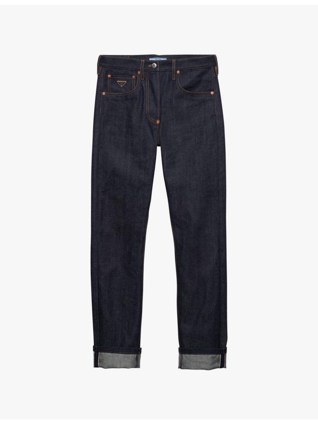 PRODUCT DETAILS - Prada denim jeans - 100% cotton - Button and zip fastening - Regular fit, mid-rise, straight leg, belt loops, dark wash, five pockets, contrast stitching, enamelled triangle logo - Dry clean - True to size - Midweight, slight stretch Ref: R04337255