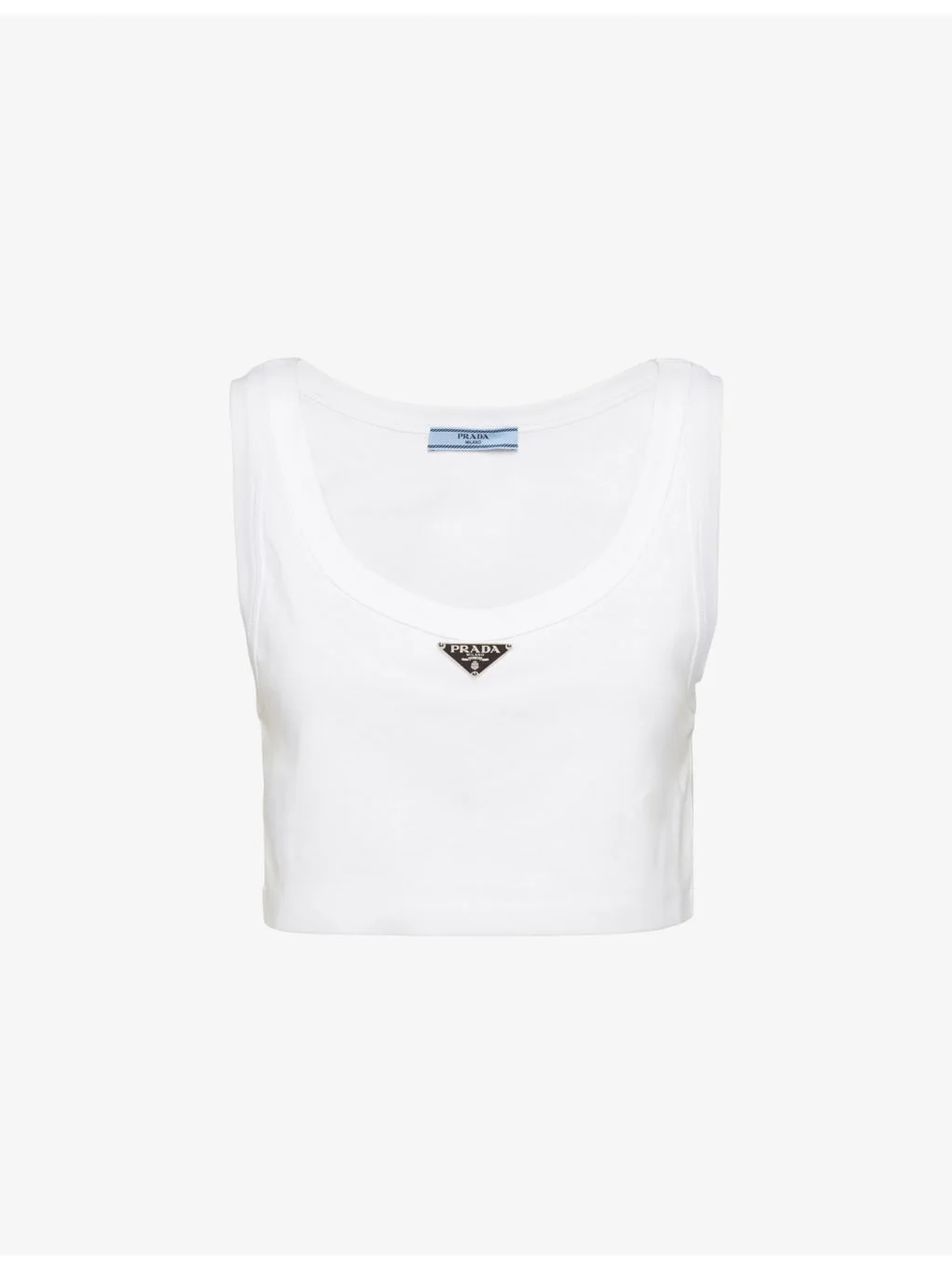 PRODUCT DETAILS - Prada cotton-jersey tank top - 100% cotton - Round neck, cropped length, jersey construction, enamelled logo plaque at chest - Hand wash Ref: R04301728