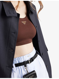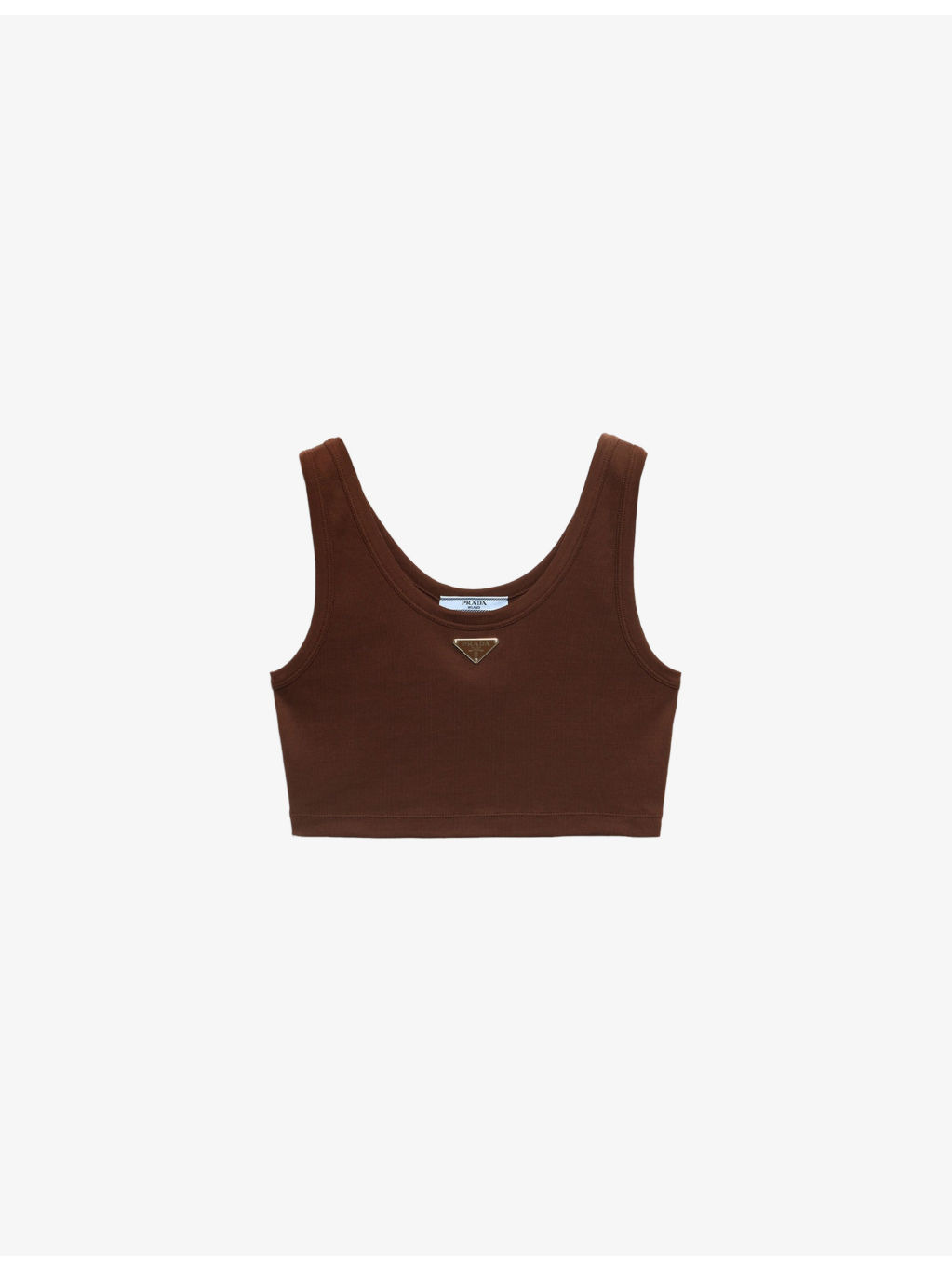 PRODUCT DETAILS - Prada cotton tank top - 100% cotton - Slips on - Slim fit, scoop neckline, sleeveless, ribbed texture, enamelled triangle logo at chest, straight hem - Dry clean - True to size - Lightweight, slight stretch - Made in Italy Ref: R04310439