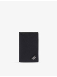 PRODUCT DETAILS - Prada leather wallet - 100% leather - Fold-over - Rectangular shape, branding plaque at front, silver-toned hardware, two slip pockets, six interior card slots, logo embossed, fully lined - Height 8cm, width 12cm, depth 1cm - Specialist leather clean Ref: R04267826