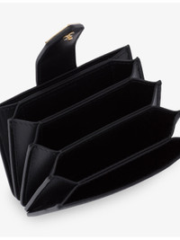 PRODUCT DETAILS - Prada leather card holder - 100% leather - Snap fastening - Rectangular shape, front strap, logo plaque at front, gold-toned hardware, five internal card slots, fully lined - Height 6cm, width 10cm - Specialist leather clean Ref: R04268264