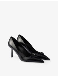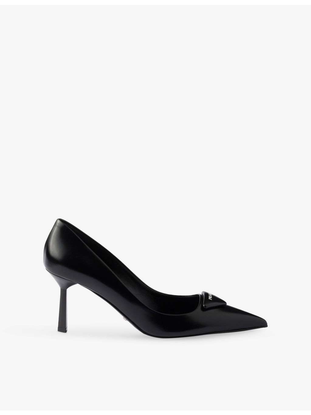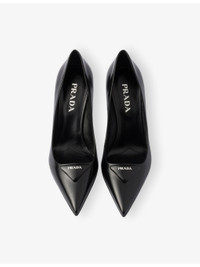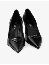 PRODUCT DETAILS - Prada leather pumps - 100% leather - Pointed closed toe, raised branded triangle detail at front, all over smooth leather texture, metal lettering logo at sole - Heel height 8cm - Specialist leather clean - Made in Italy - Upper: 100% leather - Lining: 100% leather - Sole: 100% leather - Please note, we are unable to accept in-store returns on Prada orders Ref: R04534023