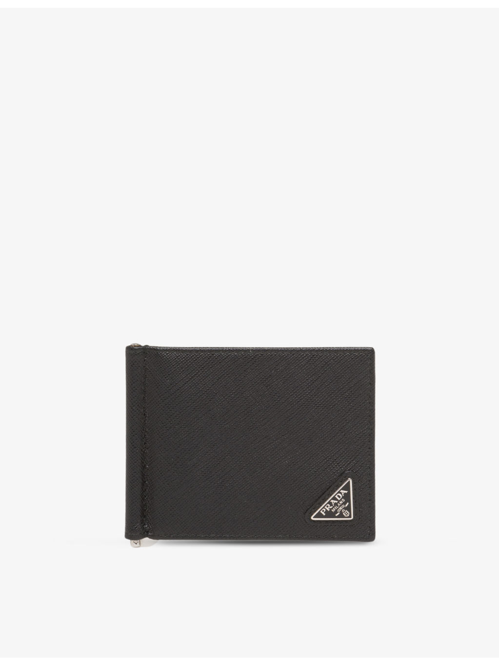 PRODUCT DETAILS - Prada leather wallet - 100% leather - Fold-over - Rectangular shape, triangle logo plaque at corner, silver-toned hardware, two slip pockets, eight interior card slots, Saffiano leather, fully lined - Height 9cm, width 11cm - Specialist leather clean Ref: R04268446