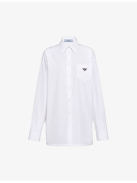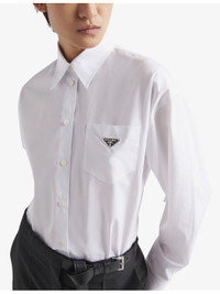 PRODUCT DETAILS - Prada cotton shirt - 100% cotton - Exposed button fastening at front - Regular fit, spread collar, long sleeves, buttoned cuffs, triangle plaque at front, patch pocket, straight hem, lined - Hand wash cold - True to size - Lightweight, non-stretch Ref: R04317131