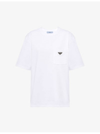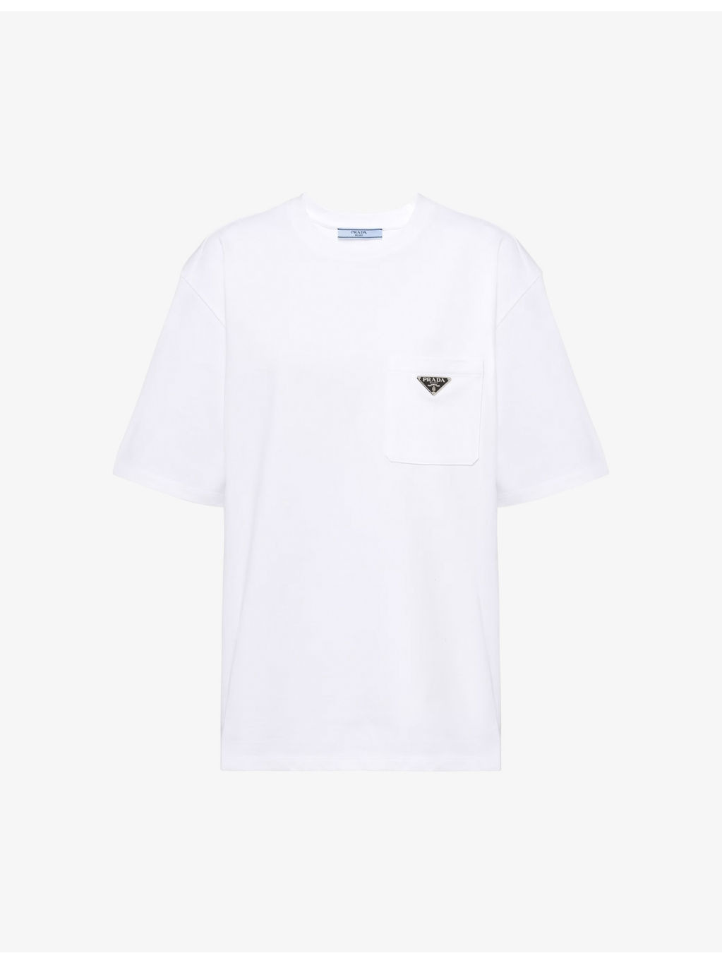 PRODUCT DETAILS - Prada cotton-jersey T-shirt - 100% cotton - Slips on - Relaxed fit, round neck, ribbed trim at neck, dropped shoulders, patch pocket at chest, short sleeves, triangle brand plaque at patch pocket - Hand wash cold - True to size - Lightweight, slight stretch Ref: R04316133