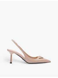 PRODUCT DETAILS - Prada leather slingback heels - 100% leather - Slips on - Closed pointed toe, metallic logo plaque, tapered silhouette - Heel height: 55mm - Specialist leather clean - Upper: 100% leather - Lining: 100% leather - Sole: 100% leather Ref: R04301719