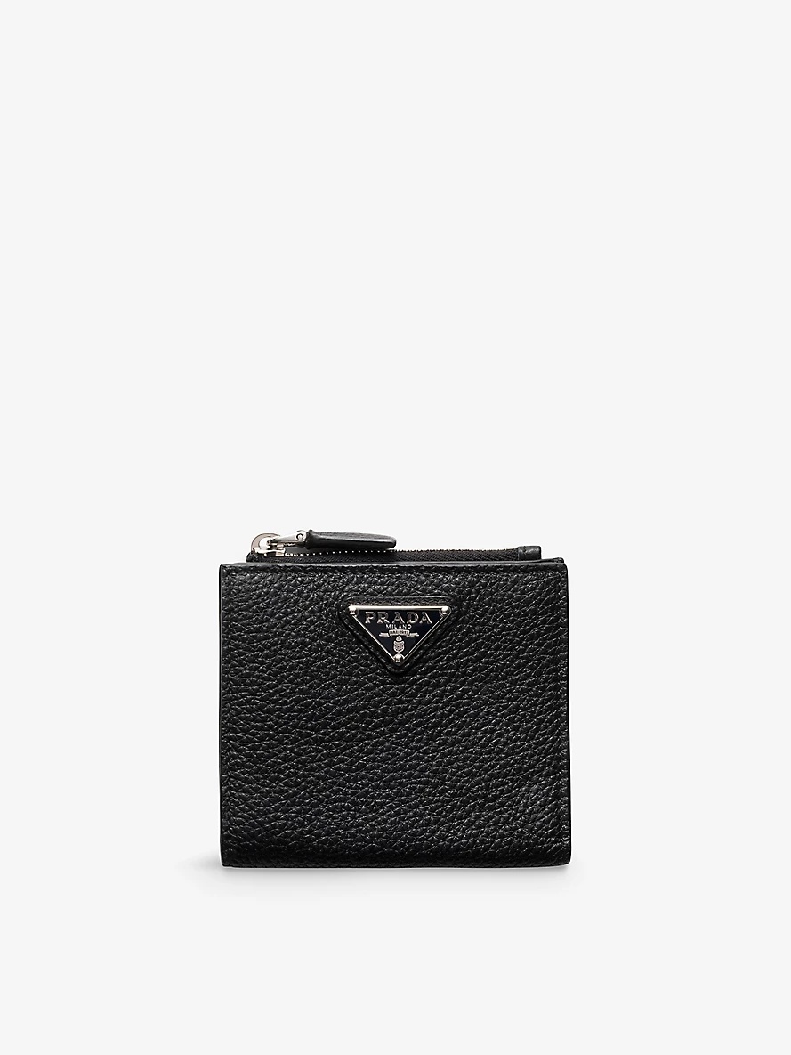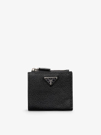 PRODUCT DETAILS - Prada leather wallet - 100% leather - Zip fastening - Rectangular shape, enamelled triangle logo plaque, one note compartment, two interior pockets, four interior card slots - Height 9cm, width 10cm - Specialist leather clean Ref: R04422607