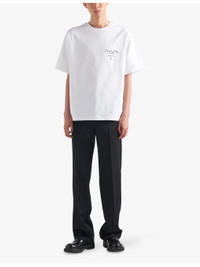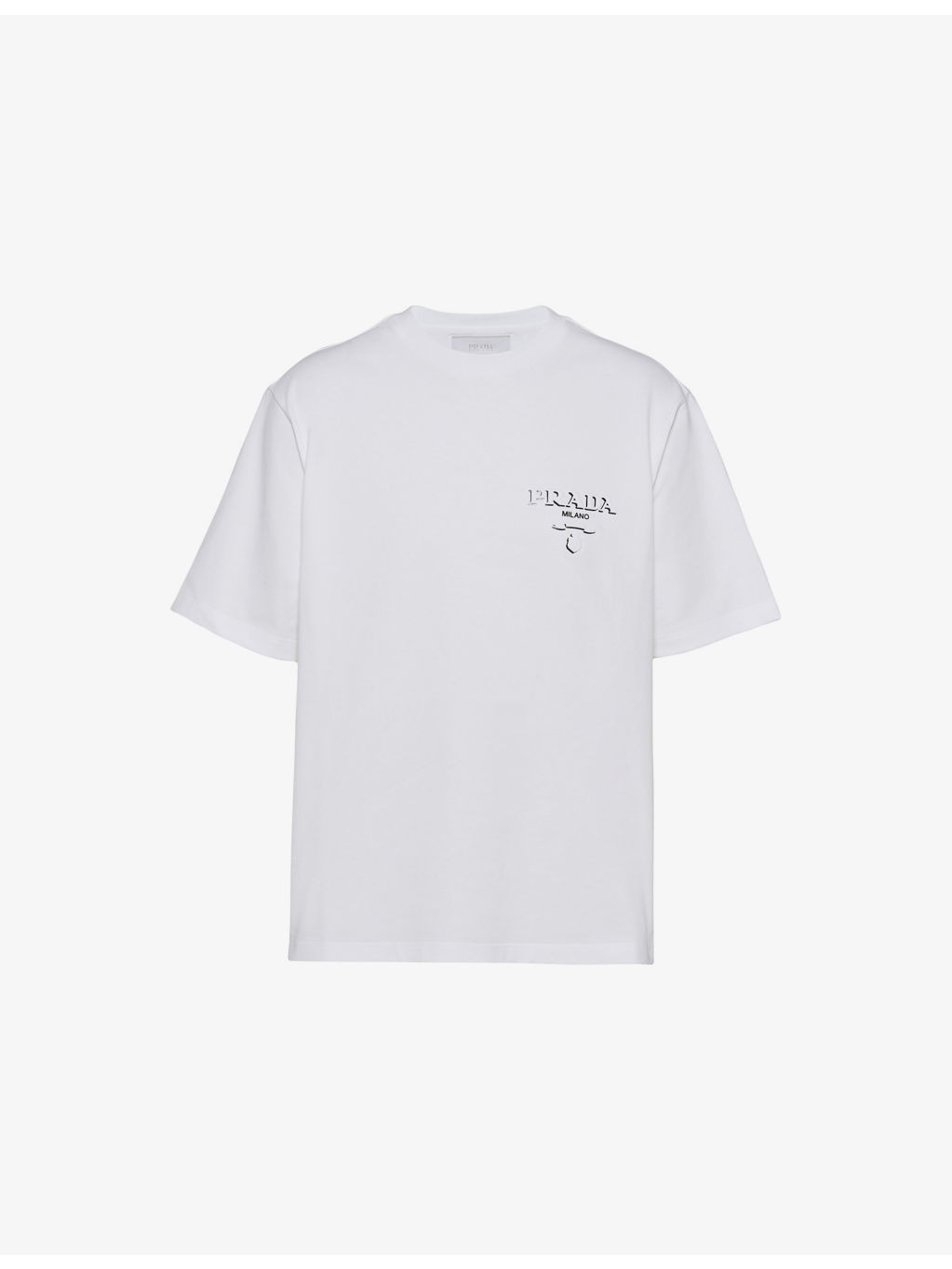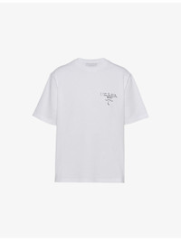 PRODUCT DETAILS - Prada cotton-jersey T-shirt - 100% cotton - Pulls on - Round neck, dropped shoulders, short sleeves, logo print at chest, straight hem, tonal stitching - Machine wash cold - Lightweight, slight stretch Ref: R04287225