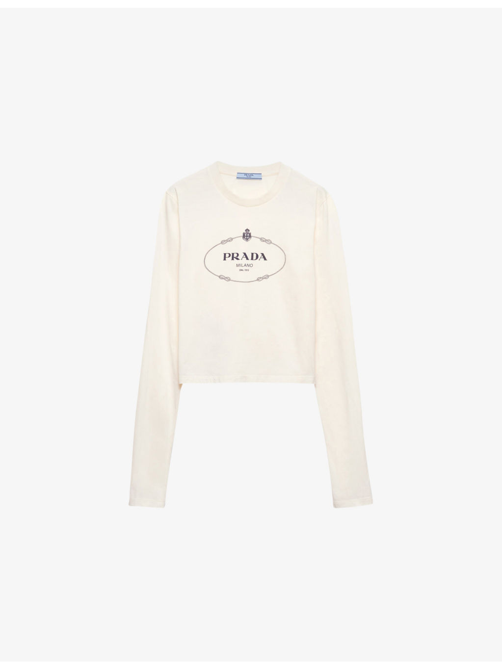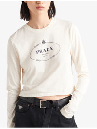 PRODUCT DETAILS - Prada cotton-jersey top - 100% - Slips on - Regular fit, round neck, long sleeves, brand print at front, cropped - Machine wash cold - True to size - Model is 5ft 10in/1.78m and wears a size small - Lightweight, slight stretch Ref: R04418541