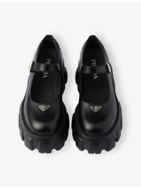 PRODUCT DETAILS - Prada leather loafers - 100% leather - Round toe, penny strap, branded triangle hardware, chunky sole - Specialist leather clean - Upper: 100% leather - Lining: 100% leather - Sole: 100% rubber Ref: R04517685
