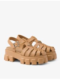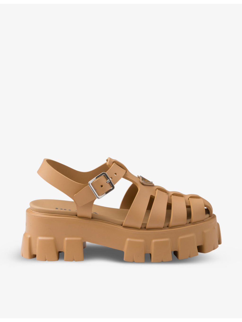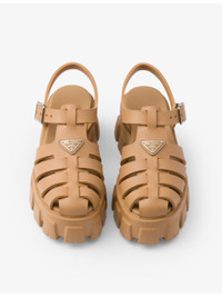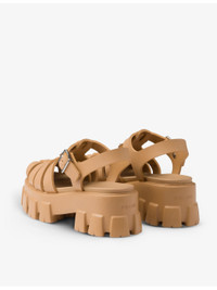 PRODUCT DETAILS - Prada rubber heeled sandals - 100% EVA - Buckle fastening - Metal buckle, enamelled metal triangle logo, rubber tread sole - Heel height 55mm - Wipe with a clean, dry cloth