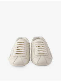 PRODUCT DETAILS - Prada leather trainers - 100% leather - Lace-up fastening - Low top, closed round toe, panel overlays, rubber sole - Upper: 100% leather - Lining: 100% textile - Sole: 100% rubber - Please note, we are unable to accept in-store returns on Prada orders Ref: R04569069