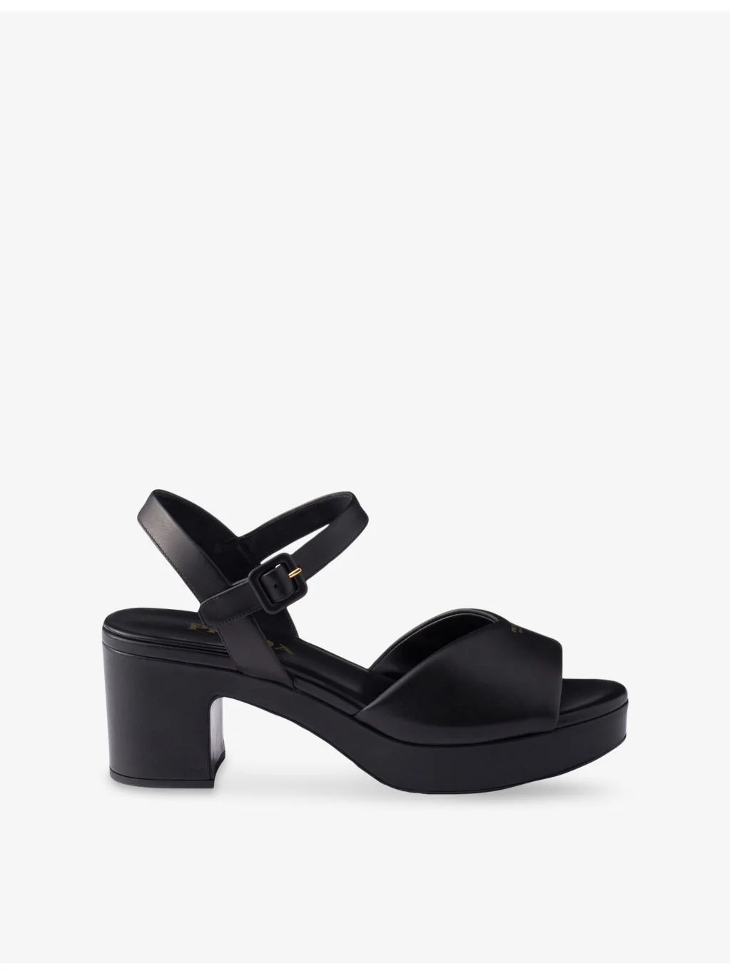 PRODUCT DETAILS - Prada leather sandals - 100% leather - Ankle-buckle fastening - Open round toe, logo print at top, block mid-heel, padded upper - Heel height 65mm - Specialist leather clean - Made in Italy - Upper: 100% leather - Lining: 100% leather - Sole: 100% leather Ref: R04506638