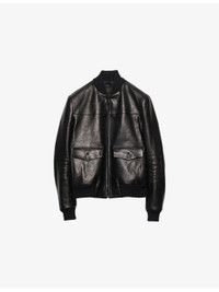 Patch-Pocket Leather Bomber Jacket