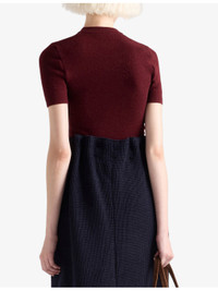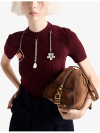 PRODUCT DETAILS - Prada wool jumper - 100% virgin wool - Slim fit, round neck, short sleeves, openwork knit to front, pendant embellishments at front, ribbed trims - Dry clean - True to size - Model is 5ft 10in/1.78m and wears a size UK 6 - Midweight, non-stretch Ref: R04545156