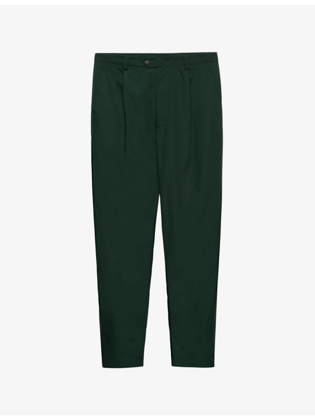 PRODUCT DETAILS - Prada woven trousers - 100% nylon - Exposed button and concealed zip-fly fastening at front - Slim fit, mid-rise, straight leg, belt loops, pleats at front, two slip pockets at front, welt pocket at back, brand print at back - Specialist dry clean - Model is 6ft 2in/1.88m and wears a size UK 32 - Midweight, non-stretch Ref: R04373213