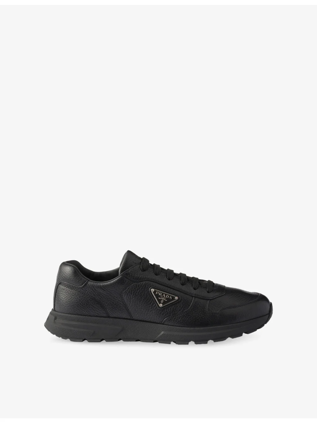 PRODUCT DETAILS - Prada leather trainers - 100% leather - Lace-up fastening - Low top, enamelled triangle logo plaque, panelled upper - Specialist leather clean - Upper: 100% leather - Lining: 100% leather - Sole: 100% rubber Ref: R04564378