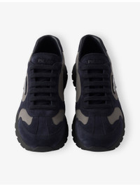 PRODUCT DETAILS - Prada suede and woven trainers - 50% suede, 50% nylon - Lace-up fastening - Round toe, low top, panelled design, branded details, textured sole - Specialist leather clean - Upper: 50% suede, 50% nylon - Lining: 100% leather - Sole: 100% rubber Ref: R04498576