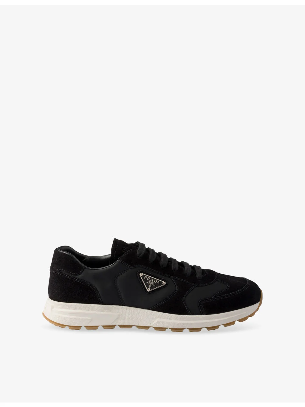 PRODUCT DETAILS - Prada suede and woven trainers - 50% suede, 50% nylon - Lace-up fastening - Round toe, low top, panelled design, branded details, textured sole - Specialist leather clean - Upper: 50% suede, 50% nylon - Lining: 100% leather - Sole: 100% rubber Ref: R04496497