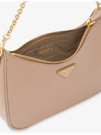 PRODUCT DETAILS - Prada leather shoulder bag - 100% leather - Zip fastening - Chain strap, detachable keyring charm, removable cross-body strap and pouch, triangle brand plaque at front, one main compartment, gold-toned hardware, fully lined, all-over Saffiano texture - Height 18cm, width 22cm, depth 6cm - Specialist leather clean - Please note, we are unable to accept in-store returns on Prada orders Ref: R04459092