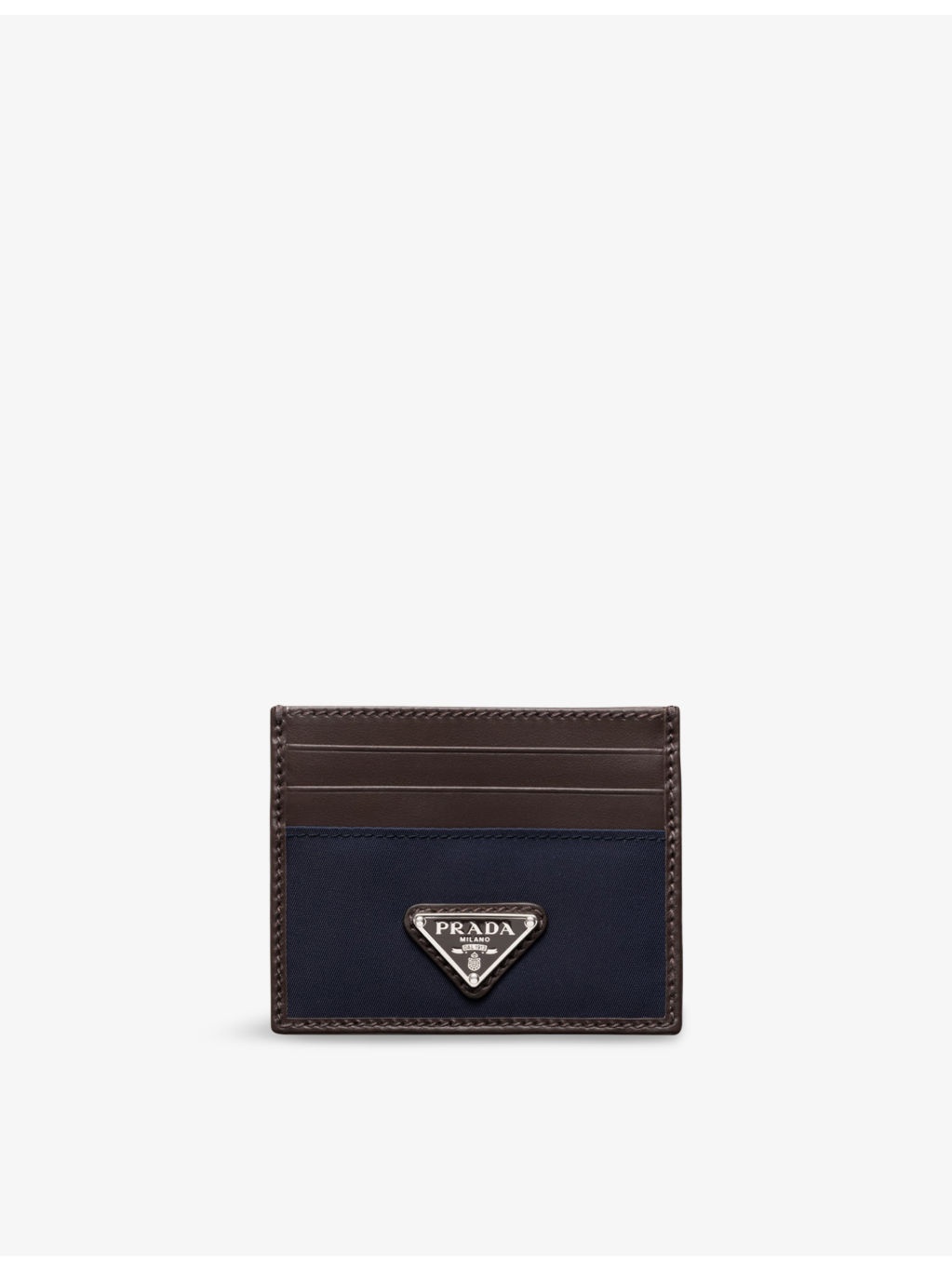 PRODUCT DETAILS - Prada leather card holder - 100% polyamide; 100% leather - Enamelled metal triangle logo, six card slots, internal pocket, moire and leather lining - Height 8cm, width 10cm - Please note, we are unable to accept in-store returns on Prada orders Ref: R04461390