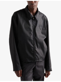 PRODUCT DETAILS - Prada woven jacket - 100% polyamide - Zip fastening - Straight fit, shirt-style collar, drop shoulder, long sleeves, welt pockets, straight cuff, straight hem, elastic drawstring, lined, fabric triangle logo and sartorial label - Model is 6ft 3in/1.90m and wears a size UK 38 - Midweight, non-stretch - Please note, we are unable to accept in-store returns on Prada orders Ref: R04523723