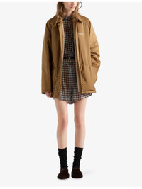 PRODUCT DETAILS - Prada woven jacket - 100% polyamide - Exposed pressed stud fastenings at front - Oversized fit, pointed collar, dropped shoulders, long sleeves, logo print at chest, two front patch pockets, removable fleece lining - Dry clean - Made in Italy - True to size - Lightweight, non-stretch Ref: R04518192
