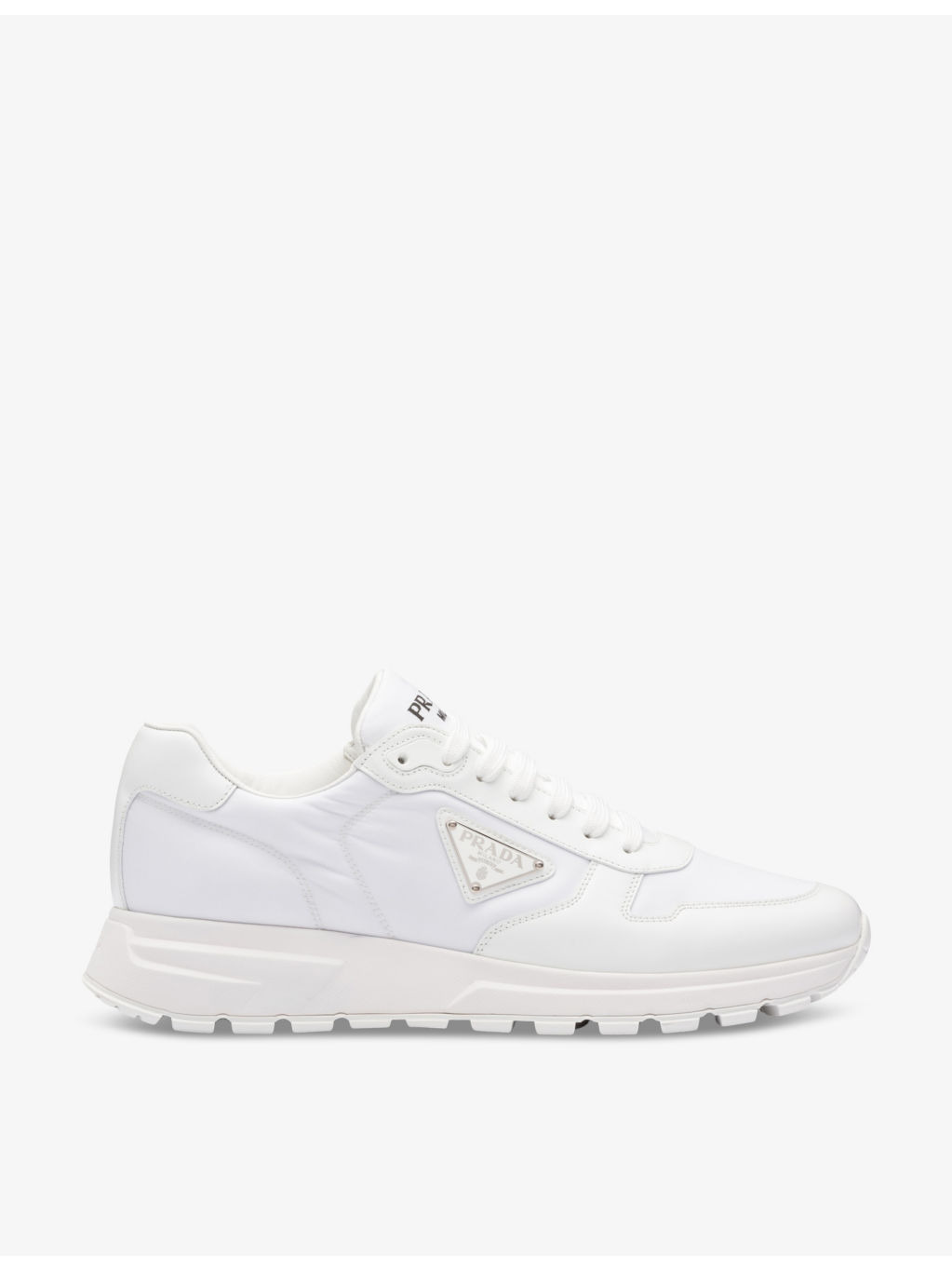 PRODUCT DETAILS - Prada leather and recycled-nylon low-top trainers - 50% leather, 50% recycled nylon - Lace-up fastening - Closed round toe, brand plaque at side, typography at tongue, chunky lightweight sole, removable insole - Wipe with a clean, dry cloth - Upper: 50% leather, 50% recycled nylon - Lining: 100% leather - Sole: 100% rubber