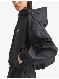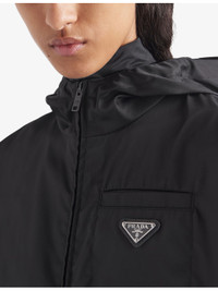 PRODUCT DETAILS - Prada recycled-nylon jacket - 100% recycled polyamide - Exposed zip fastening at front - Hooded, long sleeves, elasticated cuffs, brand plaque, relaxed fit - Hand wash - Made in Italy - True to size - Lightweight, non-stretch Ref: R04321989