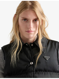 PRODUCT DETAILS - Prada shell-down gilet - 100% polyamide - Snap fastening - Boxy fit, pointed collar, padded, enamelled triangle logo at front - Midweight, non-stretch - Please note, we are unable to accept in-store returns on Prada orders Ref: R04526613