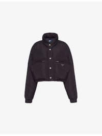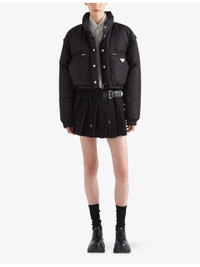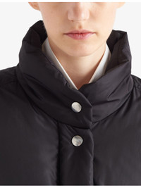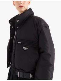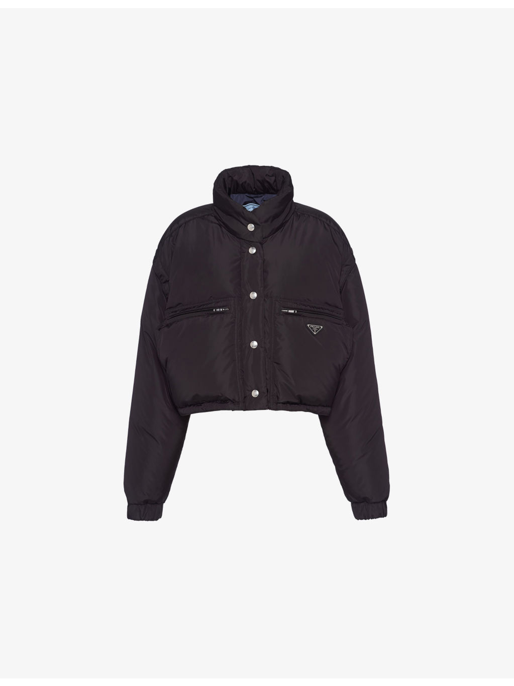 PRODUCT DETAILS - Prada down jacket - 100% polyamide - Zip fastening - High neck, long sleeves, snap fastening, front zip pockets, enamelled logo, cropped - Dry clean only - Midweight, non-stretch Ref: R04494608