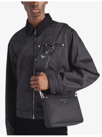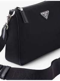 PRODUCT DETAILS - Prada leather and recycled-nylon shoulder bag - 50% leather, 50% recycled nylon - Buckle fastening - Rectangular shape, adjustable shoulder strap, brand plaque on front, silver-toned hardware - Height 18cm, width 24cm, length 6cm - Specialist leather clean Ref: R04268228