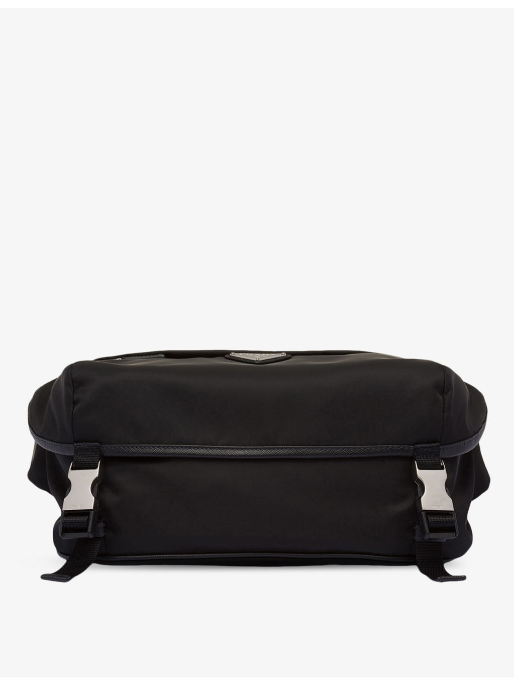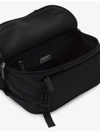 PRODUCT DETAILS - Prada leather and recycled-nylon shoulder bag - 100% recycled nylon; trims 100% leather - Buckle and zip fastening - Rectangular shape, adjustable shoulder strap, brand plaque on front, silver-toned hardware, 2 interior zipped pockets, 1 main compartment - Height 15.5cm, width 27cm, length 14cm - Specialist leather clean - Made in Italy - Presented in a branded dust bag Ref: R04268384