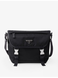 PRODUCT DETAILS - Prada leather and recycled-nylon shoulder bag - 50% leather, 50% recycled nylon - Buckle fastening - Rectangular shape, adjustable shoulder strap, brand plaque on front, silver-toned hardware - Height 16cm, width 22cm, length 8cm - Specialist leather clean - Please note, we are unable to accept in-store returns on Prada orders Ref: R04328366