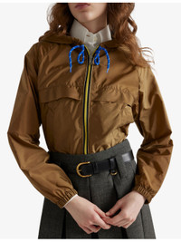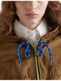 PRODUCT DETAILS - Prada shell jacket - 100% polyamide - Exposed zip fastening at front - Regular fit, hooded, long sleeves with elasticated cuffs, welt pockets, enamelled metal triangle logo, multi-coloured drawstring on hood and hem - Made in Italy - True to size - Model is 5ft 10in/1.78m and wears a size UK 8 - Lightweight, non-stretch - Please note, we are unable to accept in-store returns on Prada orders Ref: R04442807