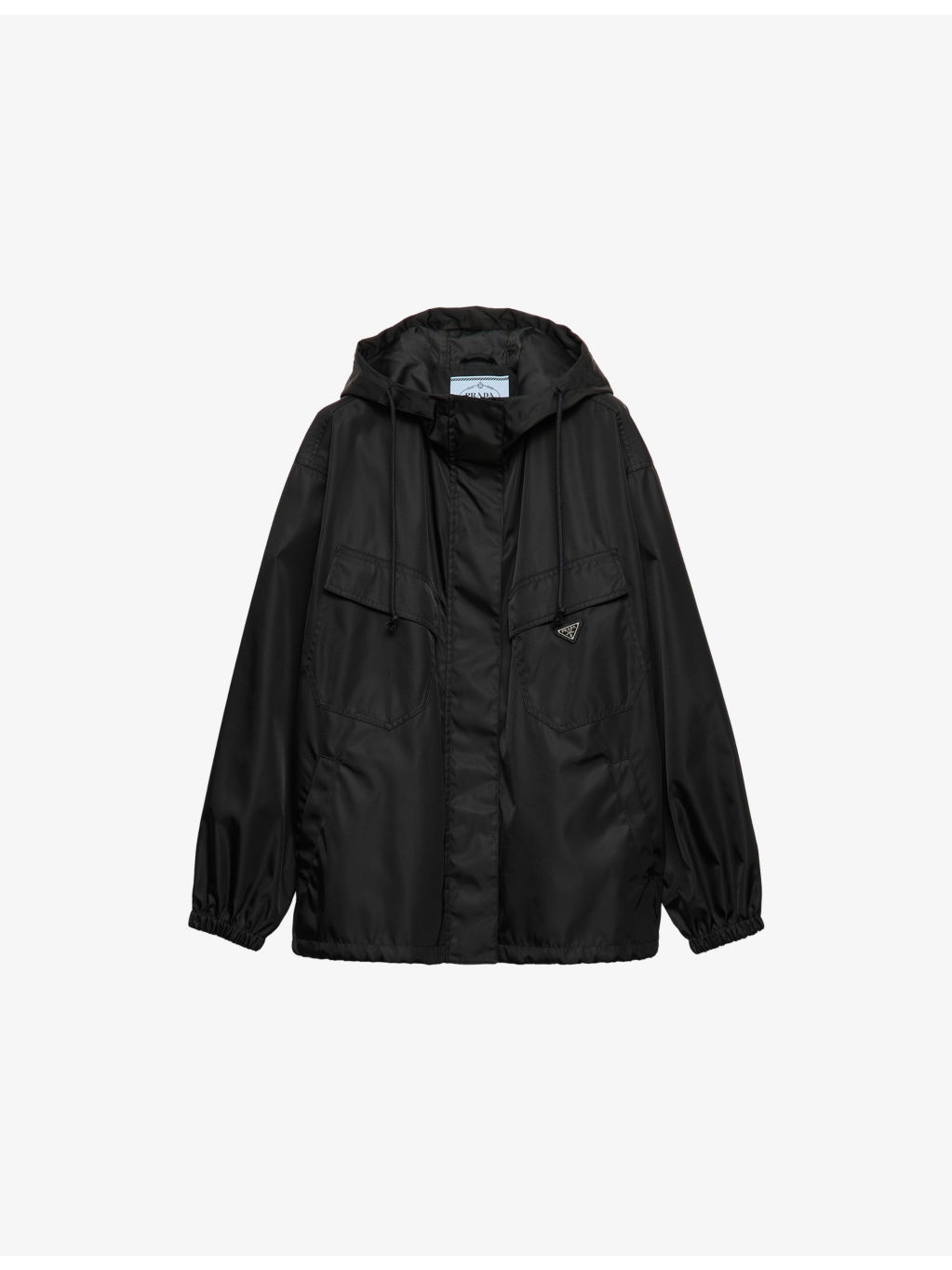 PRODUCT DETAILS - Prada woven jacket - 100% polyamide - Zip fastening - Hooded collar, long sleeves, elasticated cuff, front welt pockets, elasticated belt, enamelled metal triangle logo, cord drawstring on hood and hem - True to size - Model is 5ft 8in/1.79m and wears a size UK 8 - Midweight, non-stretch - Please note, we are unable to accept in-store returns on Prada orders Ref: R04446893