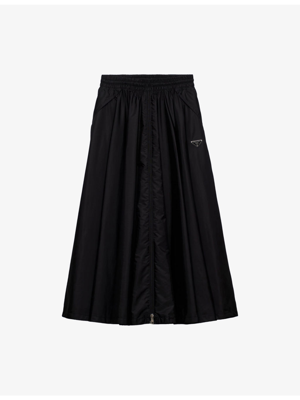 PRODUCT DETAILS - Prada woven midi skirt - Zip fastening - Fitted waist, full skirt, enamelled metal triangle logo at front, midi length - Made in Italy - Midweight, non-stretch - Please note, we are unable to accept in-store returns on Prada orders Ref: R04336568