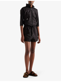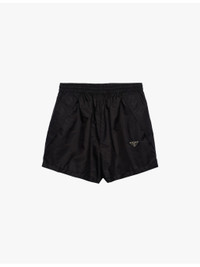 PRODUCT DETAILS - Prada recycled-polyamide shorts - 100% recycled polyamide - Slips on - Relaxed fit, elasticated drawstring waistband, enameled metal triangle logo, top-stitched hem, angled motif on the side, unlined - Made in Italy - Size UK 6= length 14.9in / 38cm - Model is 5ft 9in/1.75m and wears a size UK 6 - Lightweight, non-stretch Ref: R04350269