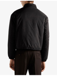 PRODUCT DETAILS - Prada woven jacket - 100% polyamide - Exposed zip fastening at front - Regular fit, shirt collar, dropped shoulders, triangle logo woven at chest, long sleeves, elasticated cuffs, two side slip pockets, elasticated drawstring hem, lined and padded - Dry clean - Lightweight, non-stretch Ref: R04509973