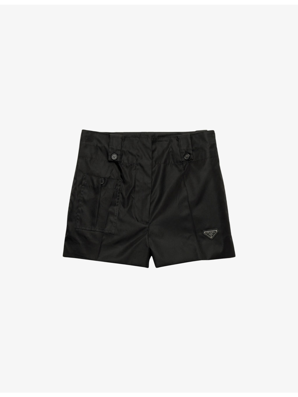 PRODUCT DETAILS - Prada woven shorts - 100% polyamide - Concealed hook-and-eye and zip-fly fastening at front - Regular fit, elasticated drawstring waist, belt loops with buttons, one side flap buttoned pocket, two rear flap buttoned pockets, enamelled metal triangle logo at front - Dry clean - True to size - Lightweight, non-stretch Ref: R04464035