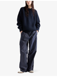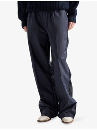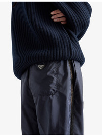 PRODUCT DETAILS - Prada woven trousers - 100% nylon - Relaxed fit, elasticated drawstring waist, wide leg, side pockets, back pockets, branded triangle hardware - Dry clean - True to size - Model is 5ft 10in/1.78m and wears a size UK 8 - Lightweight, non-stretch Ref: R04518071