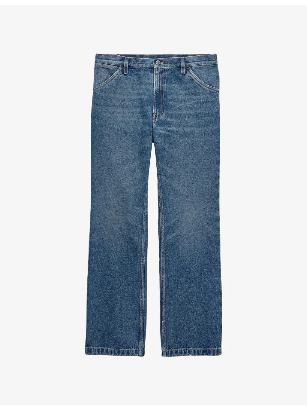 PRODUCT DETAILS - Prada denim jeans - 100% cotton - Exposed button and concealed zip-fly fastening at front - Regular fit, mid-rise, straight leg, structured waistband with belt loops, five pockets, contrast stitching, logo label at back, whiskering, washed treatment - Machine wash at 30°C - True to size - Midweight, non-stretch Ref: R04601442