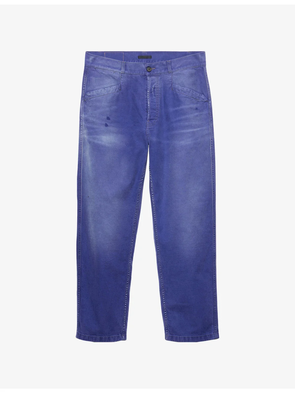 PRODUCT DETAILS - Prada denim jeans - 100% cotton - Button and button-fly fastening - Relaxed fit, mid rise, straight leg, belt loops, two welt pockets at front, patch pocket at back, brand label, vintage treatment - Dry clean - Model is 6ft 2in/1.88m and wears a size UK 38 - Midweight, non-stretch Ref: R04565069