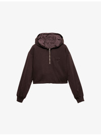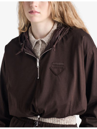 PRODUCT DETAILS - Pradacotton-jersey hoody - 100% cotton; trims 100% polyamide - Pulls on - Boxy fit, long sleeves, hem with elastic drawstring, ribbed knit cuffs, inseam pockets, fabric triangle logo, reversible garment with lightweight Re-Nylon interior - Model is 5ft 11in/1.80m and wears a size UK 8 - Midweight, slight stretch - Please note, we are unable to accept in-store returns on Prada orders Ref: R04509970