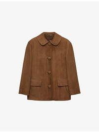 PRODUCT DETAILS - Prada suede jacket - 100% suede - Exposed button fastenings at front - Regular fit, round collar, long sleeves, two front flap pockets, triangle logo embroidered at back - Specialist leather clean - True to size - Midweight, non-stretch Ref: R04448727