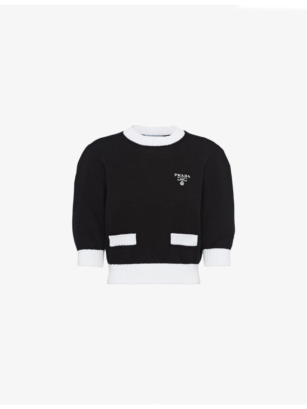 PRODUCT DETAILS - Prada cotton jumper - 100% cotton - Pulls on - Regular fit, round neck,short sleeved, brand embroidery at chest - Dry clean only - Lightweight, non-stretch Ref: R04268183