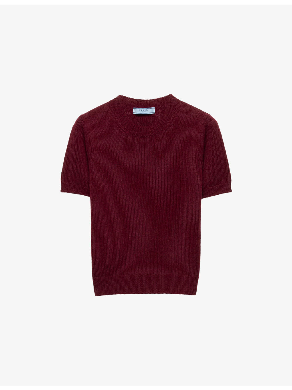 PRODUCT DETAILS - Prada cashmere jumper - 100% cashmere - Slim fit, round neck, short sleeves, all-over plain knit, knitted triangle logo, ribbed trims - Made in Italy - True to size - Model is 5ft 10in/1.78m and wears a size UK 8 - Midweight, slight stretch - Please note, we are unable to accept in-store returns on Prada orders Ref: R04459086