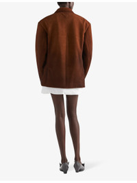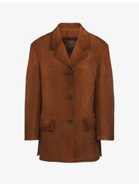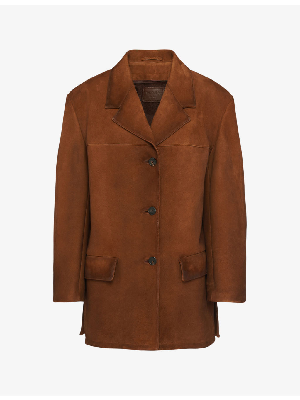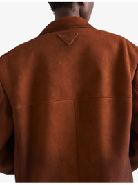 PRODUCT DETAILS - Prada suede jacket - 100% leather. Lining 100% viscose. Extractable inner layer 100% virgin wool - Button fastening - Notch lapels, flap pockets, double back vent, back triangle logo plaque, fully lined, wax treatment - Specialist leather clean Ref: R04268041