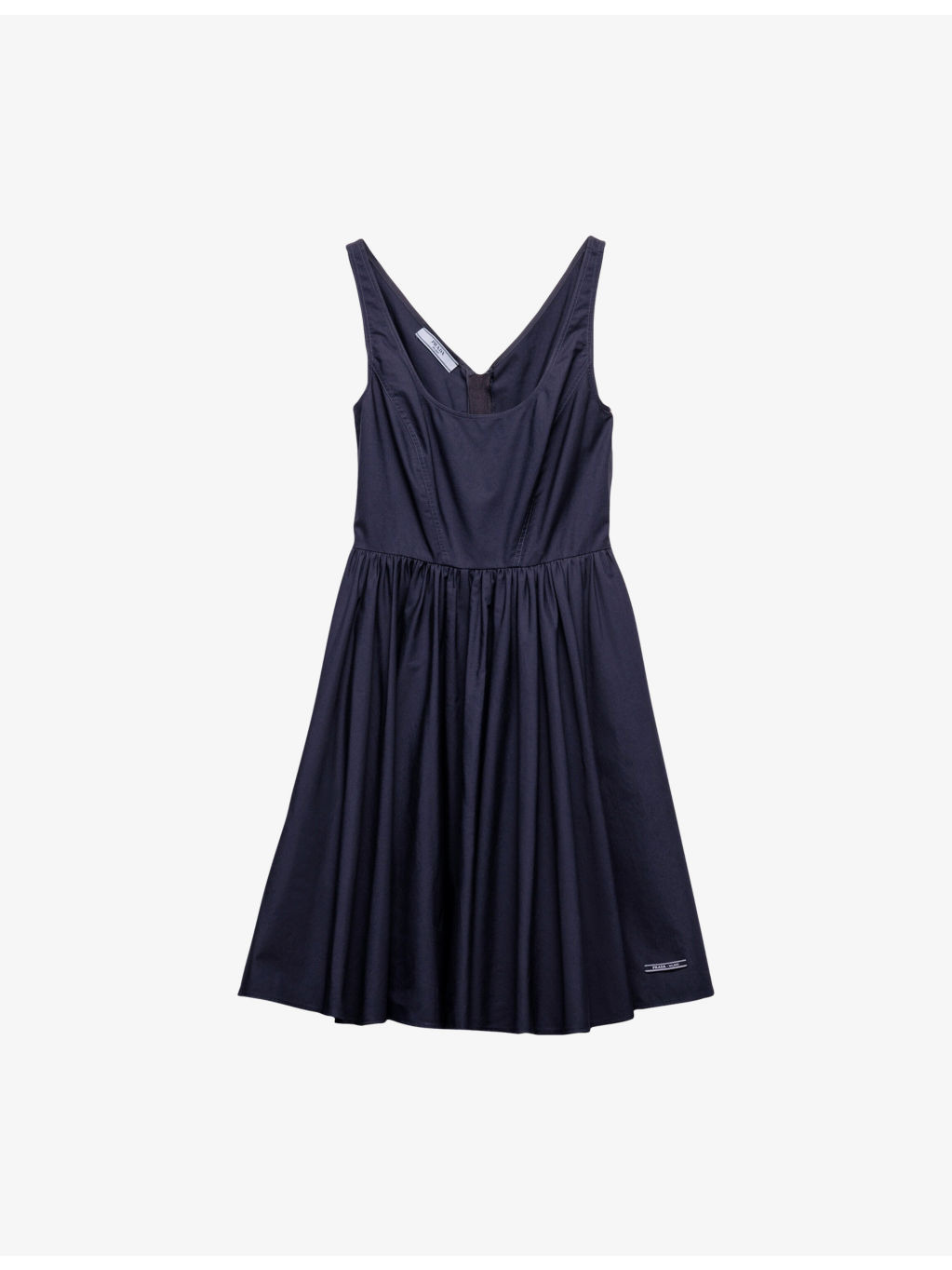 PRODUCT DETAILS - Prada cotton mini dress - 100% cotton - Zip fastening - Regular fit, round-neck, sleeveless, branded tab to hem - Dry clean - True to size - Model is 5ft 10in/1.78m and wears a size UK 8 - Lightweight, non-stretch Ref: R04441848