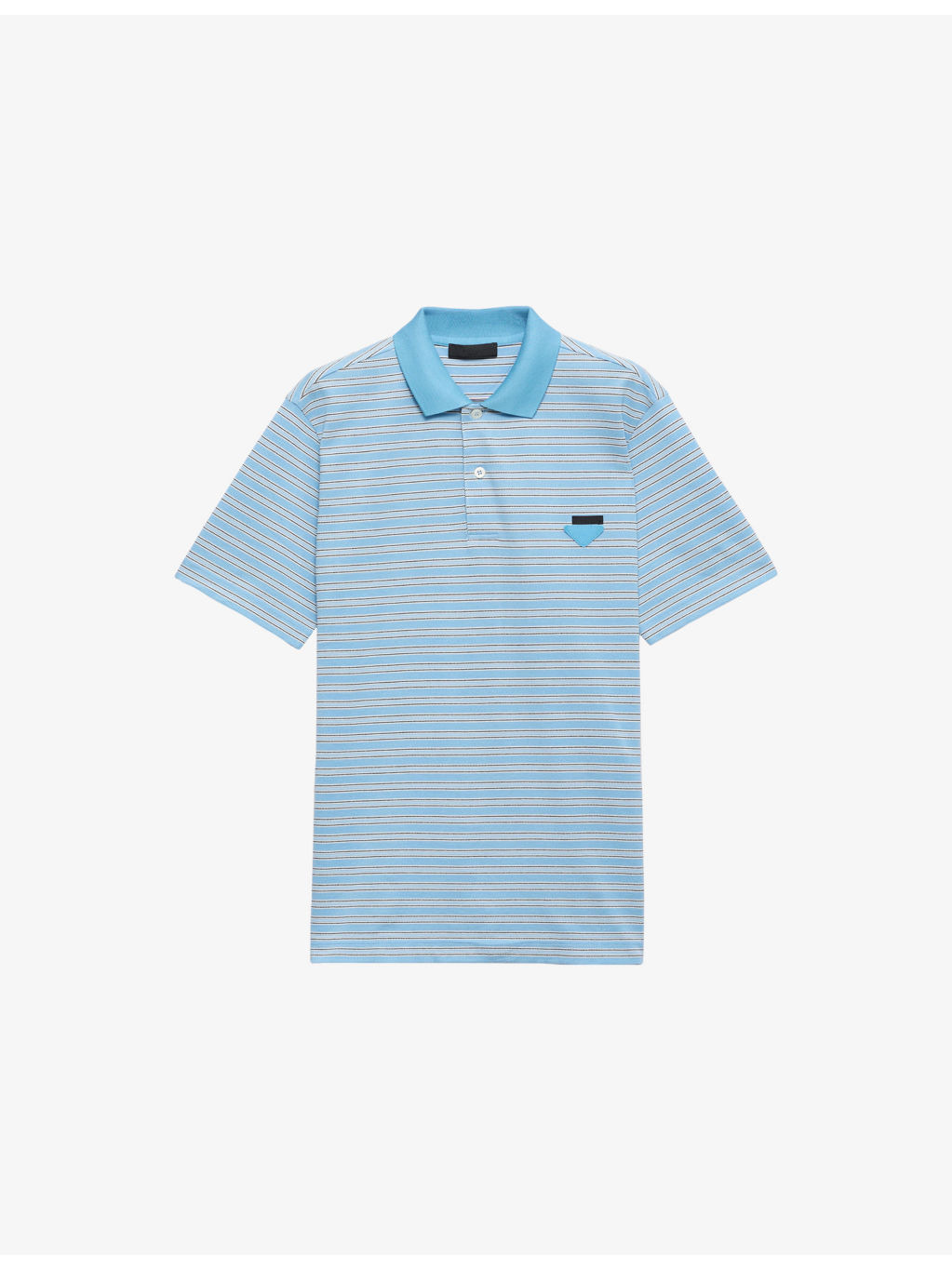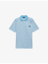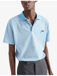 PRODUCT DETAILS - Prada cotton polo shirt - 100% cotton - Exposed button fastenings at front - Regular fit, polo shirt, button placket at front, short sleeves, triangle logo embroidered at chest, all-over stripe print - Dry clean - Made in Italy - Lightweight, slight stretch Ref: R04470637